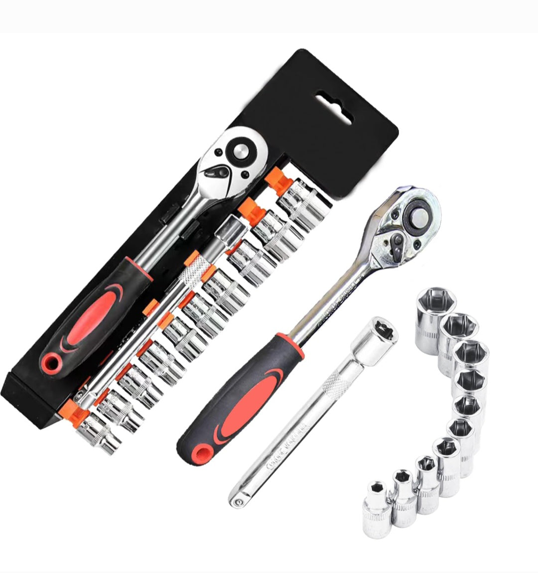 11 kom. Set nasadnih ključeva 1/2″ sk drive od utičnica veličine 8mm-22mm 1/2″ sk. drška sa čegrtaljkom sa brzim otpuštanjem, reverzibilnim i ergonomskim rukohvatom za jednostavnu upotrebu. 1/2″ sk. produžna šipka za pogon dužine 125 mm + 9 utičnica Idealan za upotrebu u popravci automobila, bicikala. Koristi se za zatezanje ili otpuštanje pričvršćivača kao što su matice vijaka itd