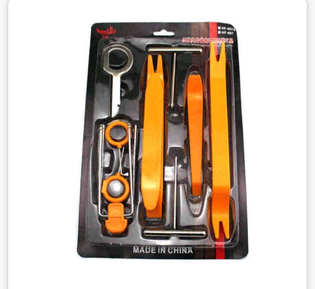 Profi alat za skidanje tapacirunga Praktičan alat pogodan za demontažu tapacirunga, lajsni i CD plejera u automobilu Sadrzaj 11 poluga od specijaln...