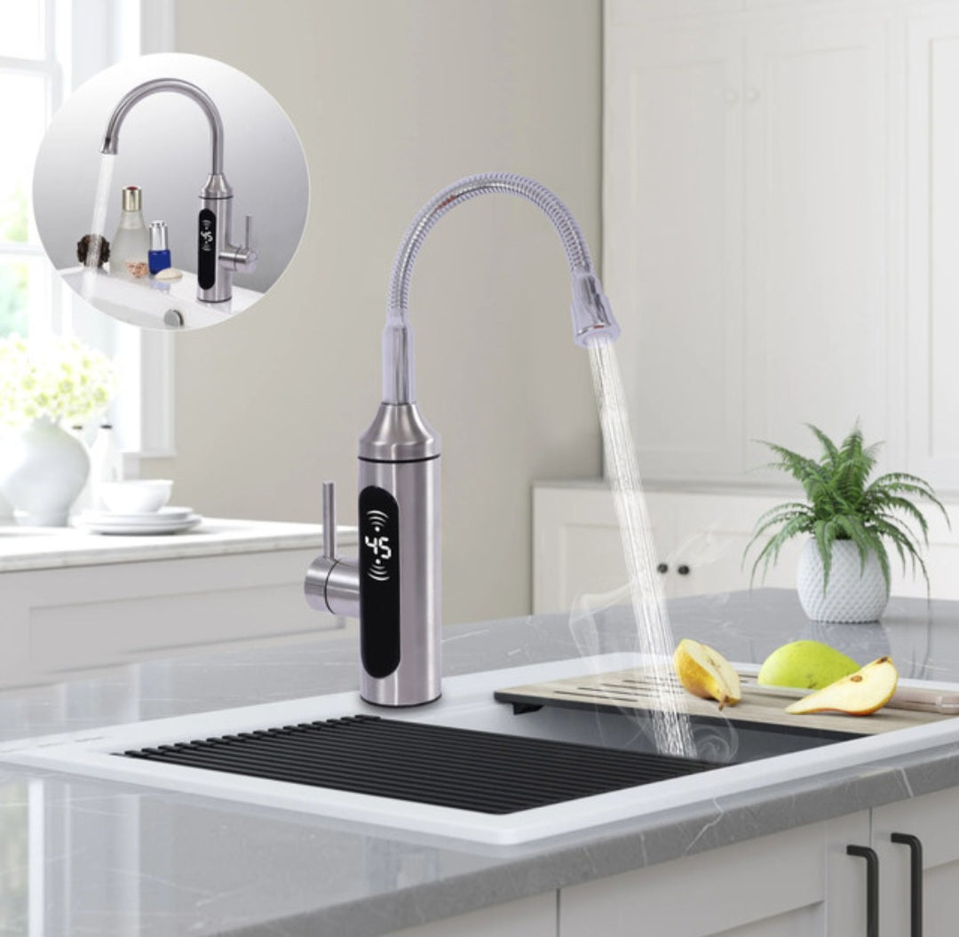 Delimano patent slavine za brzo zagrevanje vode. Protočna slavina od nerđajućeg metala, inoksa, elegantnog dizajna za montažu na sudoperu.