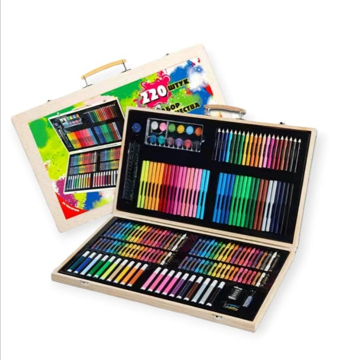 Set za kreativnost 220 predmeta u drvenoj kutiji: