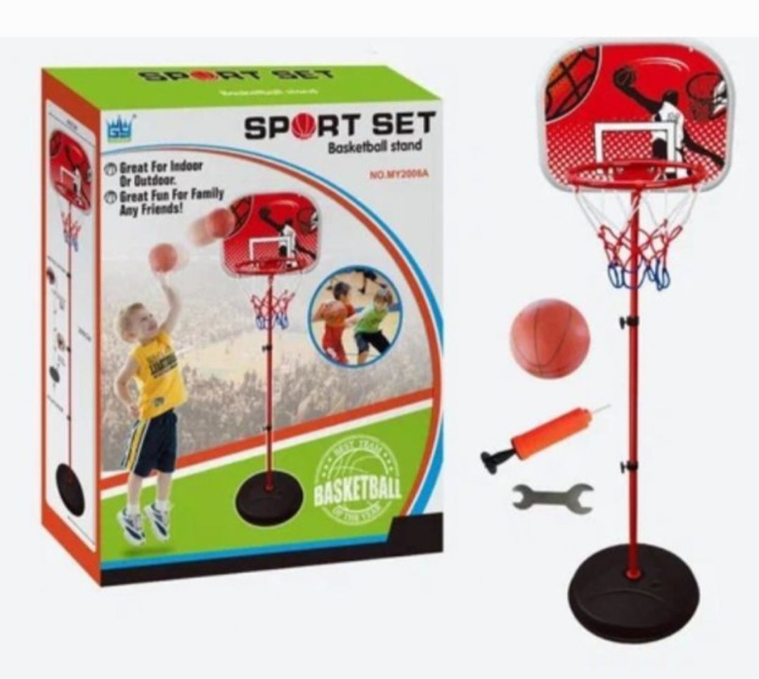 - Set uključuje: bazu za košarku, tablu, mrežu za košarku, obruč, loptu, pumpu.