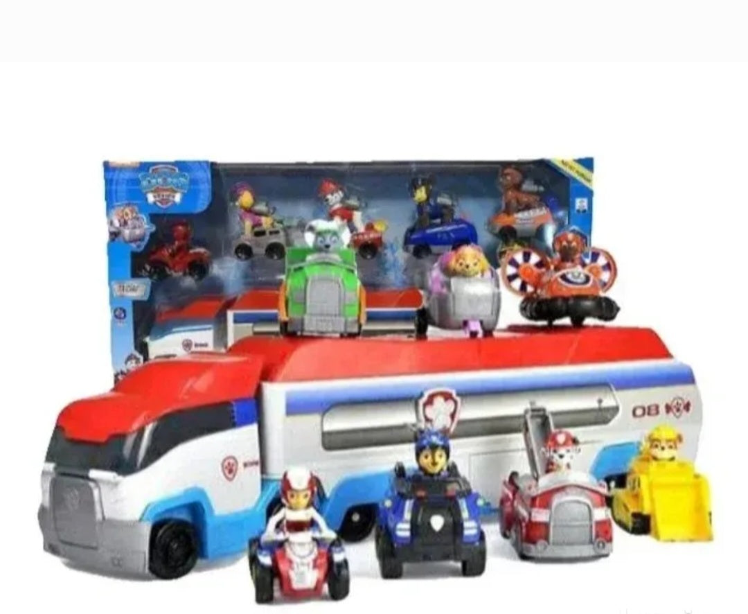 Pav patrol 7 automobila sa figurama PAV Patrol Igračka je napravljena u potpunoj sličnosti sa transportom iz crtanog filma. Kabina Avtovoza se otvara i ima dva sedišta (vozač i suvozač). Telo se može potpuno otvoriti i transformisati u spasilačku bazu sa mehaničkim liftom do drugog sprata, heliodrom i prostorom za 6 heroja sa automobilima. Kada je preklopljen, nosač automobila može da preveze do tri automobila štenaca. Za bolje kretanje patrolno vozilo je opremljeno sa 6 pari točkova. Igračka je napravljena od izdržljive, visokokvalitetne plastike. Komplet uključuje likove iz animirane serije PAV Patrol: zuma maršal roki skaj  raider cejs rabl Dimenzije: U kutiji: autotransporter + 7 figura sa automobilima. Veličina autotransportera: 44 cm. Veličina mašine: 9 cm. Veličina figure: 7 cm. Materijal igračke: hipoalergena plastika. Težina: 2,5 kg