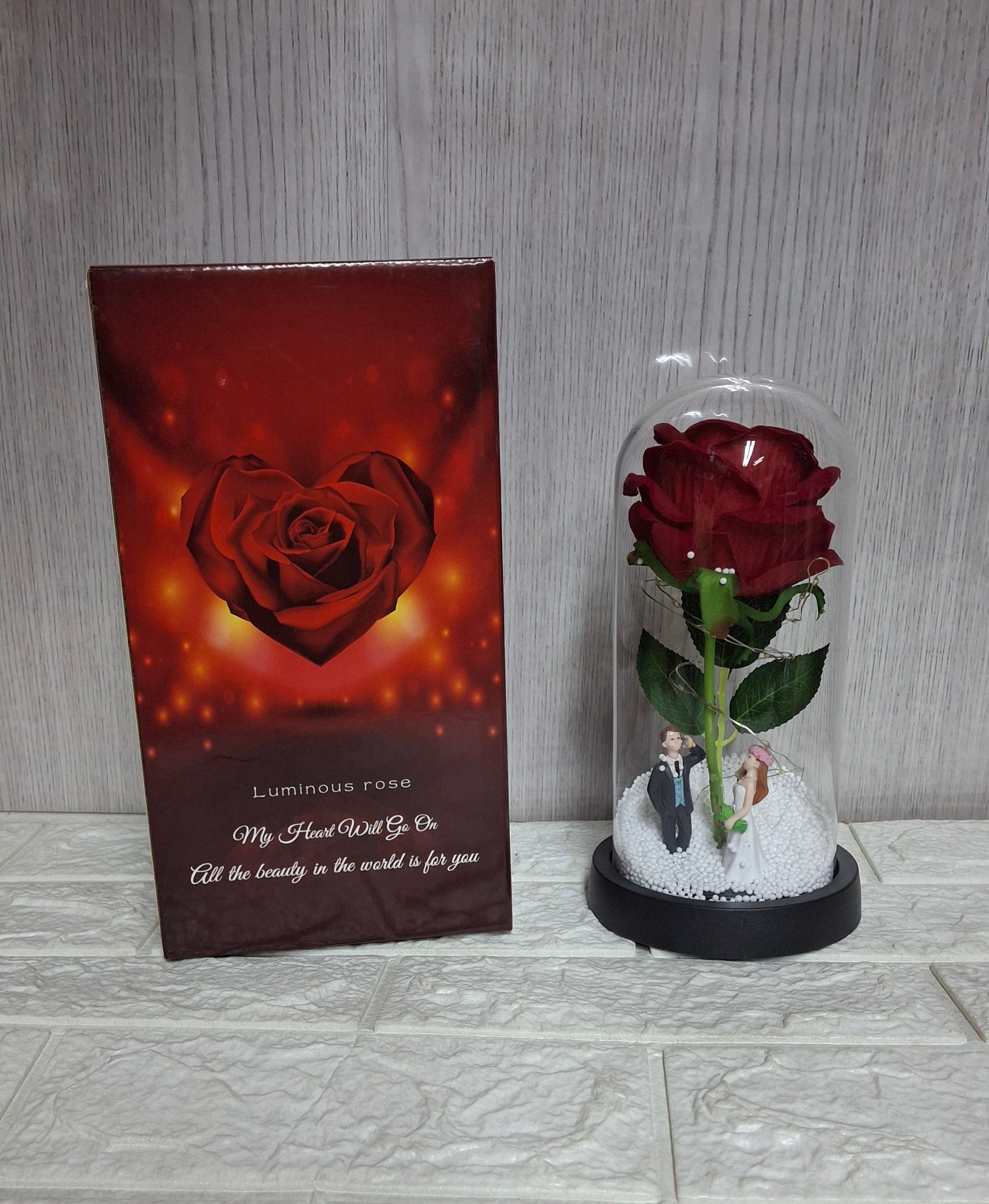 Ruže u staklu su dekorativni detalj koji kombinuje dodir prirode i romantičnu svetlost, uramljenu u staklenom postolju osvetljenom LED lampicama.