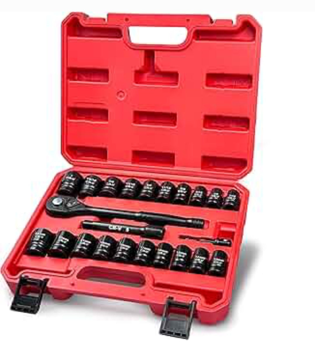 1 kom Ključ 3/8″, kardan, zajednička glava 9 kom kvadrat: 5/16, 3/8, 7, 8, 10, 11, 12, 13, 14mm 6 kom petougaoni: 8, 9, 10, 12, 14, 17mm 1 kom t...